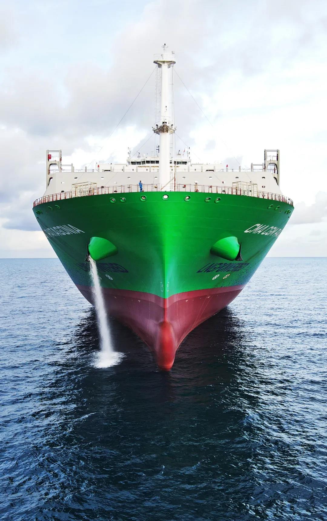 江南造船攜手中船貿(mào)易建造的15000TEU雙燃料超大型集裝箱船以LNG為主要燃料,采用了中國船舶集團(tuán)自主品牌雙燃料WinGD主機(jī),可支持船舶往返亞歐航線。與傳統(tǒng)燃油集裝箱相比,該型船可減少20%的碳、85%的氮氧化物和99%的硫排放。>>