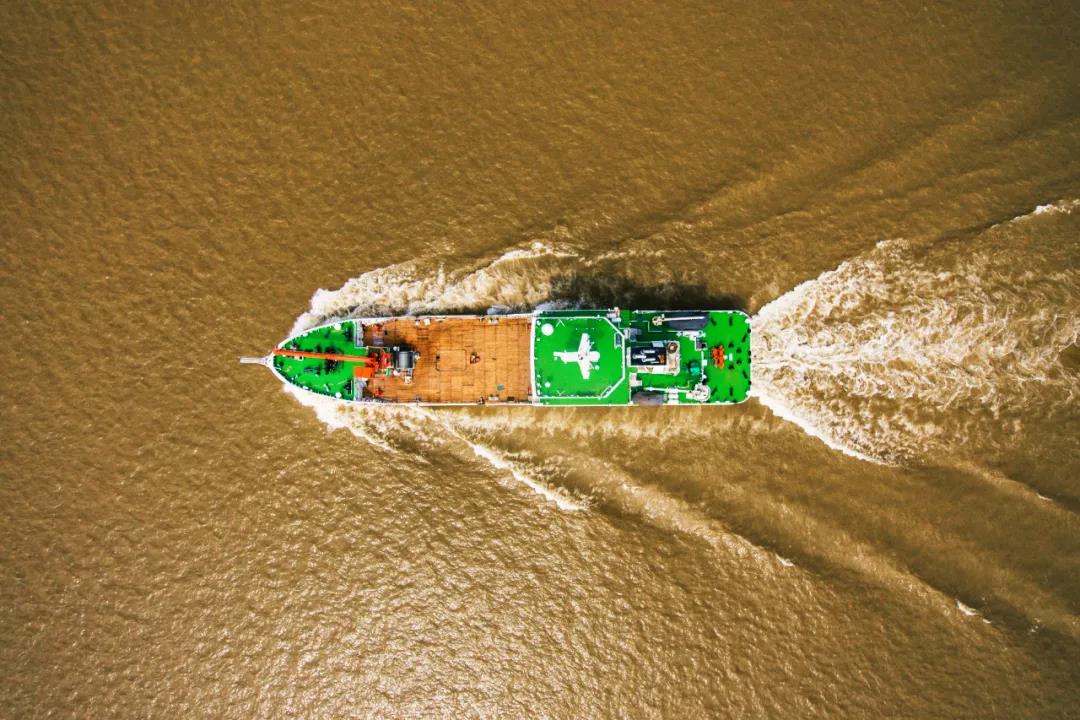 伶仃洋上碧波蕩漾,中??蜐L船2號船一騎絕塵。順利完成試航節(jié)點(diǎn)的她宛如運(yùn)動(dòng)員沖刺終點(diǎn)的紅飄帶,帶著金秋收獲的喜悅和“大干120天”的沖勁奔赴遠(yuǎn)方。