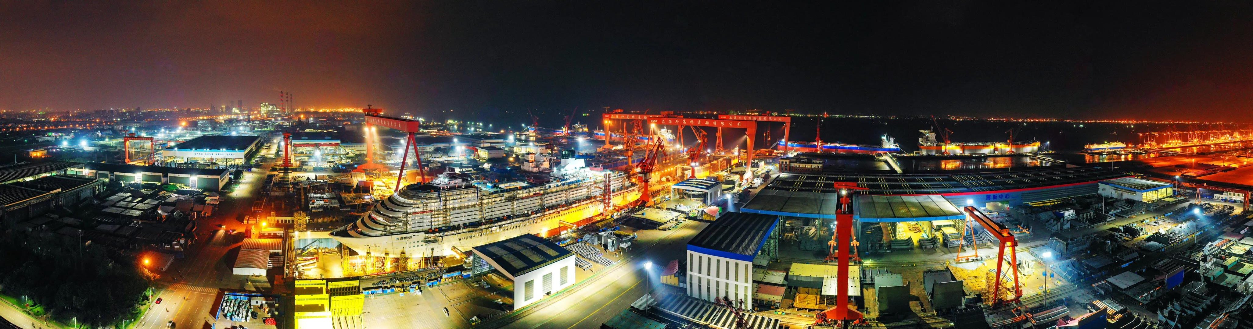 十月金秋結(jié)碩果,外高橋造船提前兩個(gè)半月完成了2021年度交船19艘/座的生產(chǎn)任務(wù),燈火通明的廠區(qū)超廣角視圖充分體現(xiàn)了外高橋造船人持續(xù)保障大型郵輪項(xiàng)目高效運(yùn)行,努力完成民船、海工、郵輪產(chǎn)品的設(shè)計(jì)建造任務(wù)、爭取以超額完成全年目標(biāo)的決心和信心。