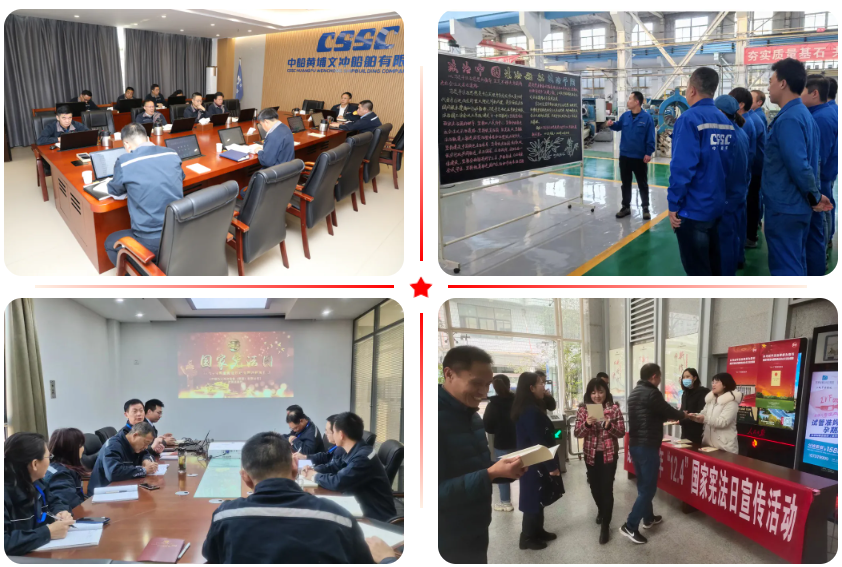 今年12月4日是第八個國家憲法日,11月29日~12月5日是第四個“憲法宣傳周”。中國船舶集團(tuán)總部和各成員單位以本次國家憲法日和“憲法宣傳周”為契機,深入開展了2021年“法治宣傳周”活動,在集團(tuán)上下掀起了尊法學(xué)法守法用法的熱潮,營造了濃厚的法治氛圍。