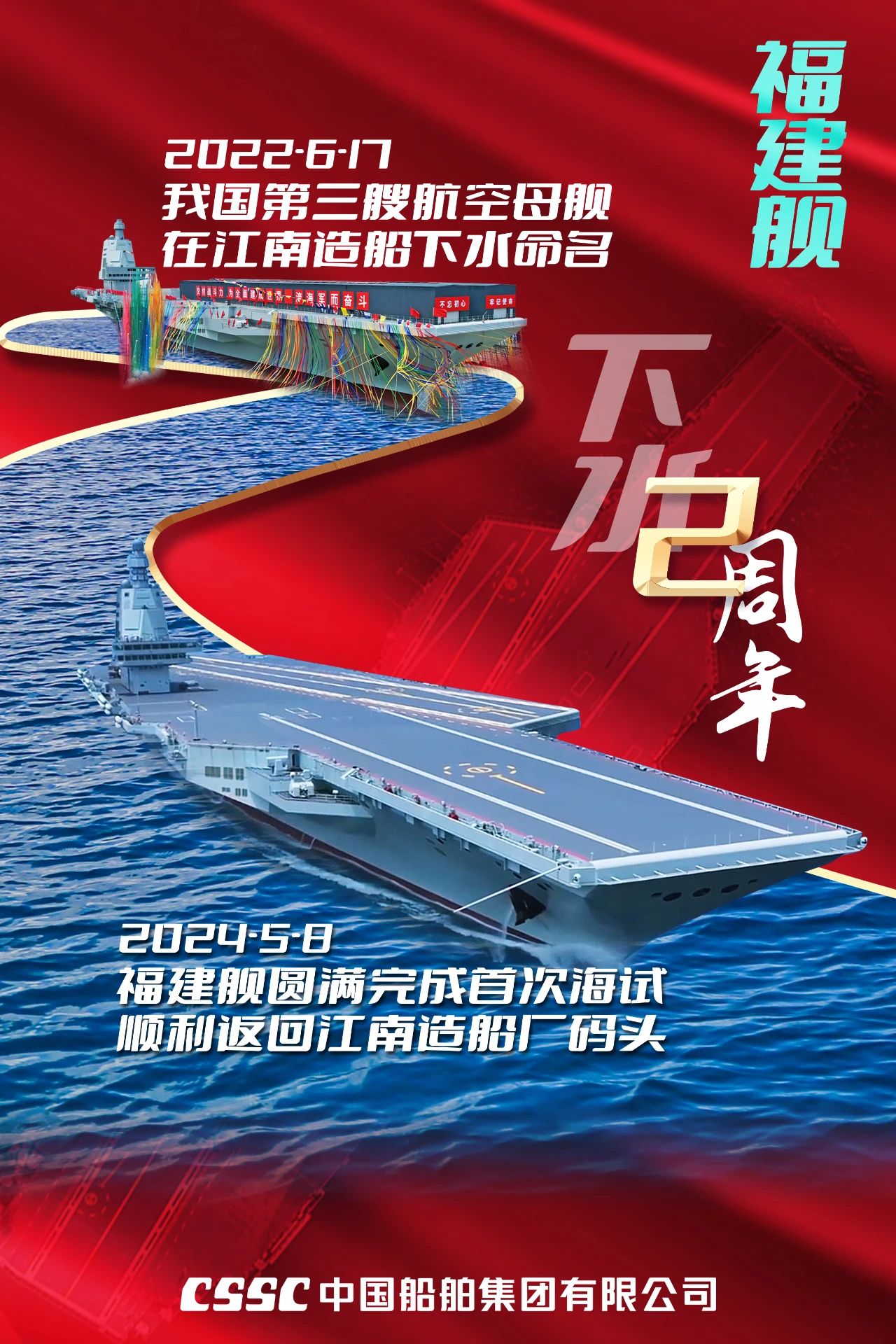 兩年前的今天,我國完全自主設(shè)計建造的首艘彈射型航空母艦——福建艦,在中國船舶集團(tuán)有限公司江南造船廠下水。