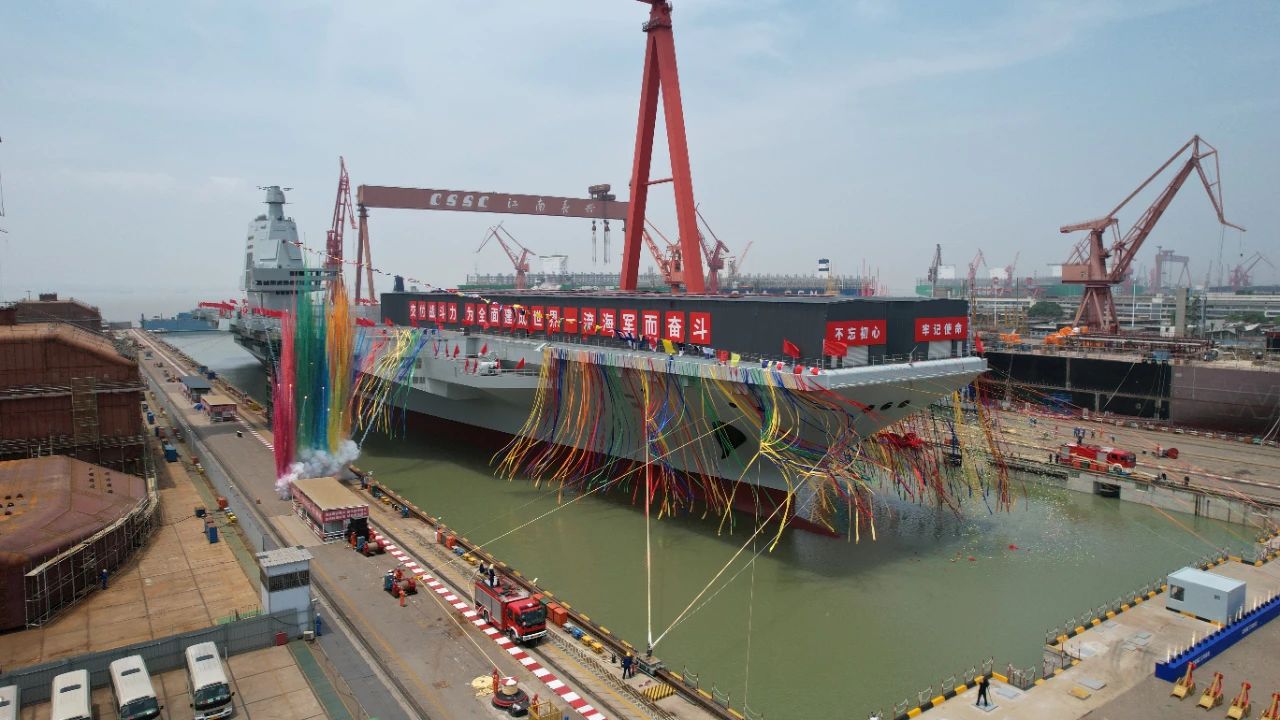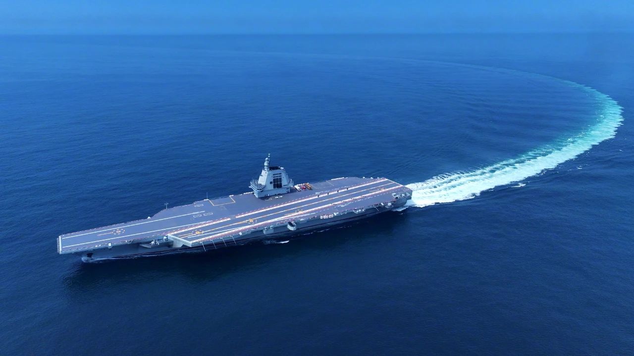 福建艦采用平直通長飛行甲板,配置電磁彈射和阻攔裝置,滿載排水量8萬余噸。下水以來,福建艦建造工作按計劃穩(wěn)步推進(jìn),順利完成系泊試驗和裝設(shè)備調(diào)試。