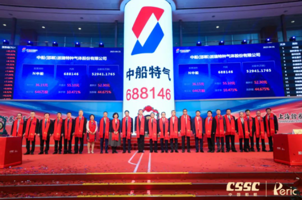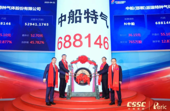 4月21日,中國船舶集團(tuán)有限公司旗下中船(邯鄲)派瑞特種氣體股份有限公司(簡(jiǎn)稱:中船特氣,證券代碼:688146)首次公開發(fā)行A股上市儀式在上海證券交易所舉行。這是中國船舶集團(tuán)旗下第12家上市公司,也是集團(tuán)公司重組后首家在科創(chuàng)板公開發(fā)行A股的上市公司。中國船舶集團(tuán)黨組書記、董事長(zhǎng)溫剛出席儀式,黨組成員、總會(huì)計(jì)師賈海英出席儀式并致辭,黨組成員、副總經(jīng)理盛紀(jì)綱出席儀式。
