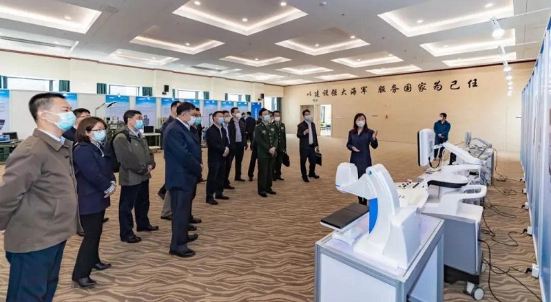 ????莊樹新一行參觀了中國船舶集團(tuán)骨干衛(wèi)勤裝備和彩色多普勒超聲診斷儀等醫(yī)療器械展示,聽取了中國船舶集團(tuán)部署推進(jìn)應(yīng)急醫(yī)療衛(wèi)勤裝備、智能移動(dòng)方艙醫(yī)院與高端醫(yī)療器械領(lǐng)域關(guān)鍵核心技術(shù)攻關(guān)及產(chǎn)業(yè)化發(fā)展等有關(guān)情況匯報(bào)。