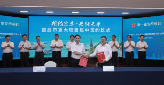 7月28日,中國船舶集團有限公司黨組成員、副總經(jīng)理錢建平代表中國船舶集團與宜昌市政府簽訂了《中國船舶(宜昌)海洋裝備科技園項目框架合作協(xié)議》。宜昌市委書記周霽、市長張家勝參加簽約活動。