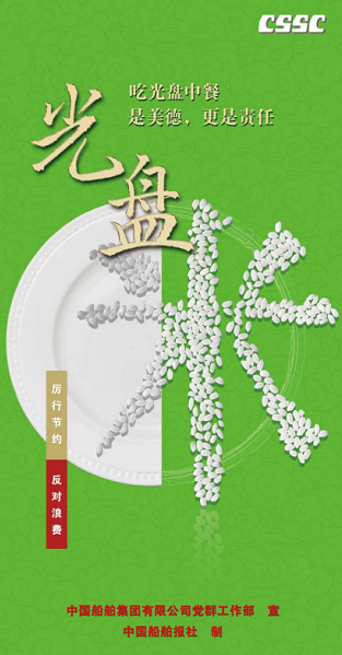勤儉節(jié)約是中華民族的傳統(tǒng)美德,也是中國共產(chǎn)黨的優(yōu)良作風(fēng)。為深入貫徹落實(shí)習(xí)近平總書記重要指示精神,中國船舶集團(tuán)黨組對制止餐飲浪費(fèi)作出全面部署,要求集團(tuán)公司廣大黨員干部在厲行節(jié)約、反對浪費(fèi)方面走在前列、作出表率,大力弘揚(yáng)勤儉節(jié)約的光榮傳統(tǒng)。