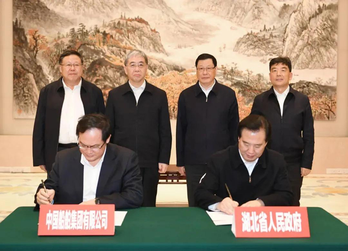 會見后,楊金成與黃楚平分別代表中國船舶集團和湖北省政府簽署了戰(zhàn)略合作協(xié)議。