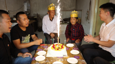 在翻查民情日志的時(shí)候,我看到了兩位老人家的生日。他們無兒無女,我便籌劃著給老兩口過一次生日。后經(jīng)支部研究決定,我們?yōu)槔蟽煽谶^了一個溫暖的生日。