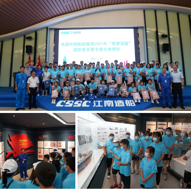 他們還實(shí)地參觀了江南造船的船塢、港池、碼頭、車間等生產(chǎn)區(qū)域,登上了即將完工的新型艦船,并收到了學(xué)習(xí)禮包——江小南鋼筆、深藍(lán)小分隊(duì)書包等。