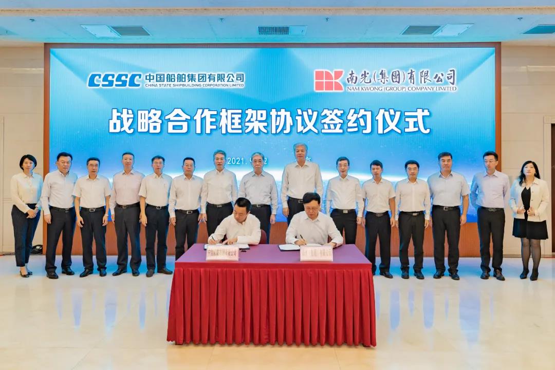 9月22日,中國(guó)船舶集團(tuán)有限公司與南光(集團(tuán))有限公司在京簽署戰(zhàn)略合作框架協(xié)議。中國(guó)船舶集團(tuán)黨組書記、董事長(zhǎng)雷凡培,南光(集團(tuán))董事長(zhǎng)傅建國(guó)出席簽約儀式。中國(guó)船舶集團(tuán)黨組成員、副總經(jīng)理盛紀(jì)綱,南光(集團(tuán))副總經(jīng)理王彤彥分別代表雙方簽約。