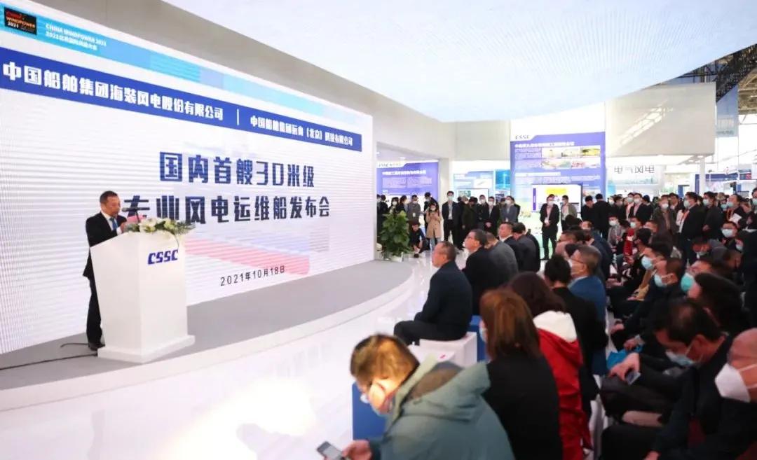 在風(fēng)能展上,中國海裝與遠(yuǎn)舟科技聯(lián)合設(shè)計制造的國內(nèi)首艘30米級專業(yè)風(fēng)電運(yùn)維船發(fā)布,最大裝載38噸,可抗浪高4米,可搭乘12名運(yùn)維人員和6名船員,具有高強(qiáng)度、輕重量的結(jié)構(gòu)特點和優(yōu)良的安全性、快速性、防腐性、耐波性等,將于今年正式投運(yùn)。