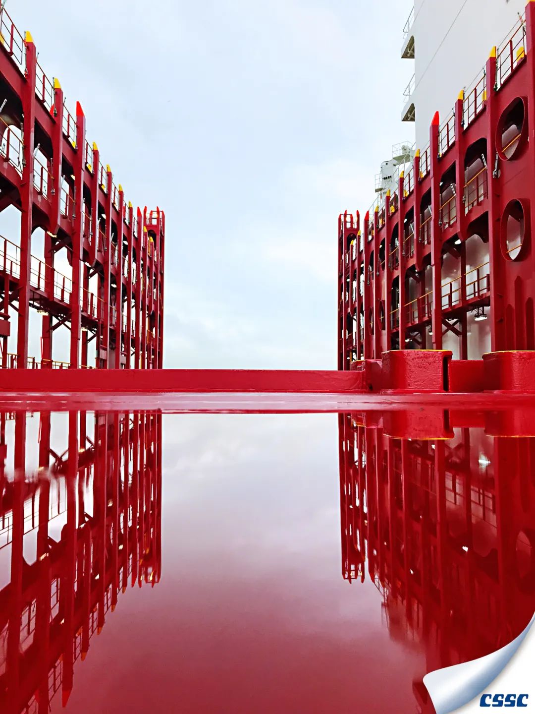 由七〇八所研發(fā)設(shè)計(jì)的20000TEU超大型集裝箱船試航期間,紅色的船體與倒影融為一體,充滿了夢(mèng)幻色彩,寓意紅色基因在實(shí)現(xiàn)海洋強(qiáng)國(guó)夢(mèng)的征程中愈發(fā)光彩奪目。