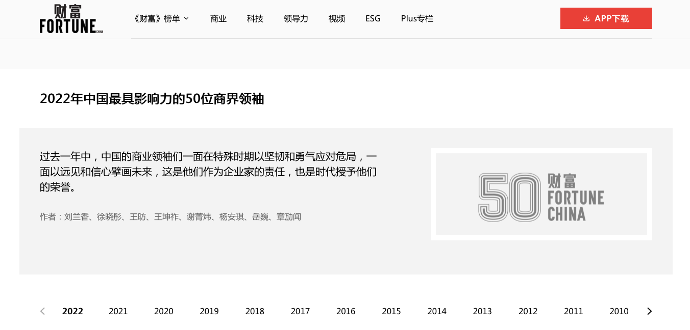 截圖來自《財富》官網 據(jù)了解,《財富》于2005年開始評選“中國最具影響力的商界領袖”。 點擊“閱讀原文”,了解更多。 | 責 編:高紅梅 | 校 對:周 芒 | 審 核:項 麗/甘豐錄