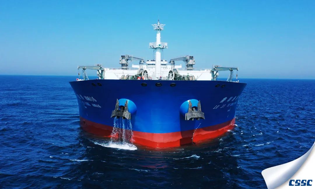 滬東中華建造的我國首艘江海聯(lián)運(yùn)型8萬立方米LNG運(yùn)輸船“傳奇太陽”號(hào)在長興造船基地命名交付。她猶如一位亭亭玉立的舞者,在蔚藍(lán)色的綢面畫出美妙的曲線。