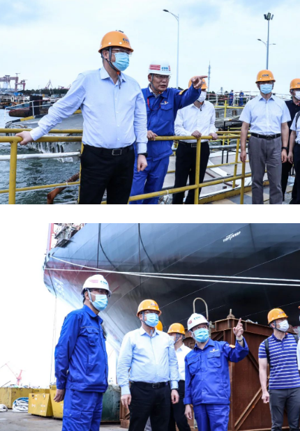 9月22日,中國船舶集團有限公司黨組副書記、總經(jīng)理楊金成到集團公司旗下江南造船、滬東中華調(diào)研指導(dǎo)工作。楊金成聽取了江南造船、滬東中華近期安全生產(chǎn)、疫情防控、保密保衛(wèi)、信訪維穩(wěn)等工作及生產(chǎn)經(jīng)營情況的匯報,并登上兩家企業(yè)船塢碼頭查看了重點在建船舶進展情況。