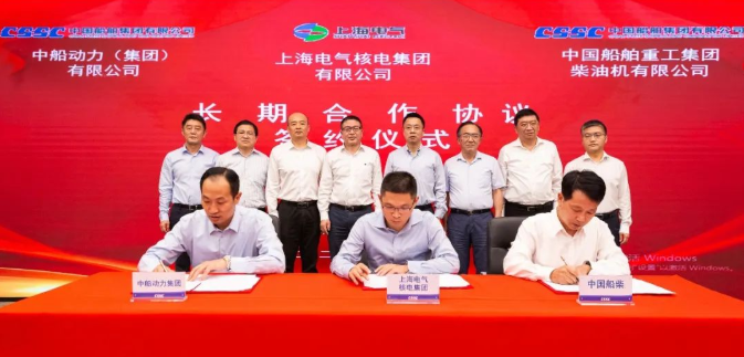 2022年9月30日,中國船舶集團(tuán)旗下中船動(dòng)力(集團(tuán))有限公司、中國船舶重工集團(tuán)柴油機(jī)有限公司與上海電氣集團(tuán)旗下上海電氣核電集團(tuán)有限公司在上海簽署了長期合作協(xié)議。中國船舶集團(tuán)黨組成員、副總經(jīng)理盛紀(jì)綱,上海電氣集團(tuán)黨委委員、副總裁金孝龍出席簽約儀式。