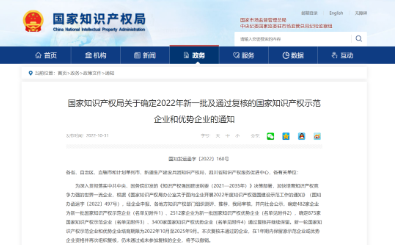 10月31日,國(guó)家知識(shí)產(chǎn)權(quán)局發(fā)布了《關(guān)于確定2022年新一批及通過(guò)復(fù)核的國(guó)家知識(shí)產(chǎn)權(quán)示范企業(yè)和優(yōu)勢(shì)企業(yè)的通知》(國(guó)知發(fā)運(yùn)函字〔2022〕160號(hào))。