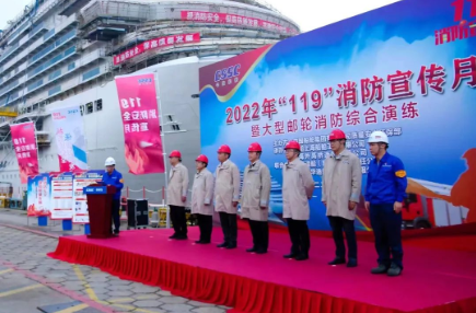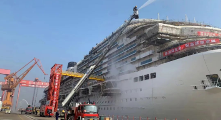 船舶建造過程中動火作業(yè)多、交叉作業(yè)多、有限空間多,消防安全一直以來都是企業(yè)安全生產工作的重點。本次演練選取大型郵輪作為演練對象,情景模擬船上發(fā)現(xiàn)火情后,外高橋造船以及聯(lián)合演練單位的消防隊伍實施協(xié)同救援,包括初期火情應對、應急報告、船上人員疏散、被困人員搜救、滅火等內容,檢驗了企業(yè)應對突發(fā)火情的快速反應能力和協(xié)同作戰(zhàn)能力。