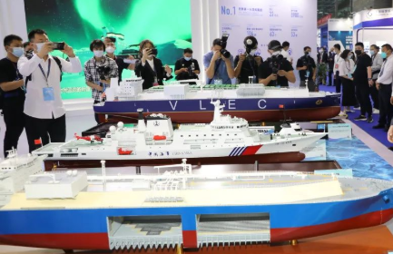 在展示遼寧艦、常規(guī)動力潛艇、驅逐艦等產品的海洋防務裝備展示區(qū)附近,閃光燈不斷,與會觀眾紛紛駐足,觀看、留影。在高端船海裝備展示區(qū),135500總噸大型郵輪、17.4萬方LNG運輸船、23000箱雙燃料集裝箱船、21萬噸雙燃料散貨船等系列化主力船型和全球領先的船海產品,同樣讓與會觀眾驚嘆不已。