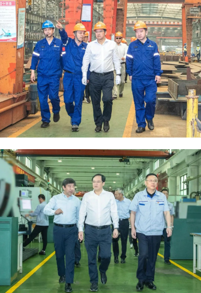 在武昌造船,楊金成深入生產(chǎn)一線詳細(xì)了解情況,并聽(tīng)取了武昌造船關(guān)于生產(chǎn)經(jīng)營(yíng)和未來(lái)發(fā)展規(guī)劃的匯報(bào)。在東儀科工,楊金成前往生產(chǎn)車間調(diào)研產(chǎn)品生產(chǎn)情況,并聽(tīng)取了七〇五所/中船華雷及東儀科工關(guān)于生產(chǎn)經(jīng)營(yíng)及發(fā)展規(guī)劃的匯報(bào)。
