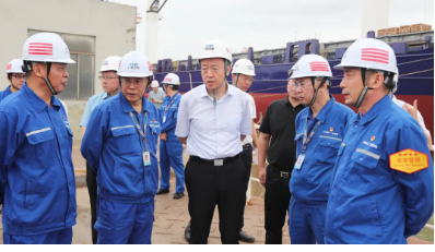 6月8日下午、9日上午,在龍穴基地調(diào)研期間,溫剛走進造修船生產(chǎn)現(xiàn)場,登上多型重點在建船舶,察看車間、船塢、船臺等生產(chǎn)區(qū)域,與企業(yè)班子成員深入交流,聽取了黃埔文沖、廣船國際產(chǎn)業(yè)發(fā)展、深化改革、科技創(chuàng)新、人才隊伍建設(shè)、精益管理、黨的建設(shè)等有關(guān)情況的匯報。