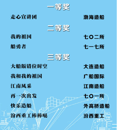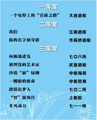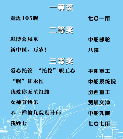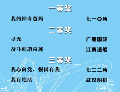 由中國船舶集團(tuán)黨群工作部指導(dǎo),中國船舶集團(tuán)新聞宣傳中心/中國船舶報(bào)社承辦的中國船舶集團(tuán)第二屆短視頻大賽圓滿落幕。經(jīng)過前期篩選,網(wǎng)絡(luò)投票,并特邀國務(wù)院國資委新聞中心、國防科工局新聞宣傳中心、中央電視臺(tái)、微博政務(wù)、中國船舶集團(tuán)黨群工作部專家評(píng)審,大賽最終評(píng)出一等獎(jiǎng)5部,二等獎(jiǎng)10部,三等獎(jiǎng)23部,同時(shí)評(píng)出優(yōu)秀組織獎(jiǎng)單位6家。名單如下,快來圍觀!