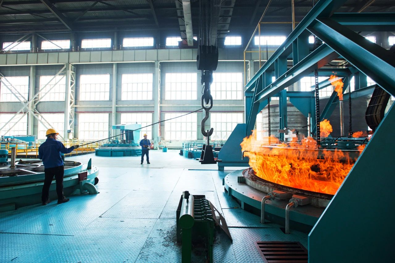 熱處理工人們面對著高達800攝氏度的高溫火焰,毫無懼色,依然穩(wěn)定地操作著設備。