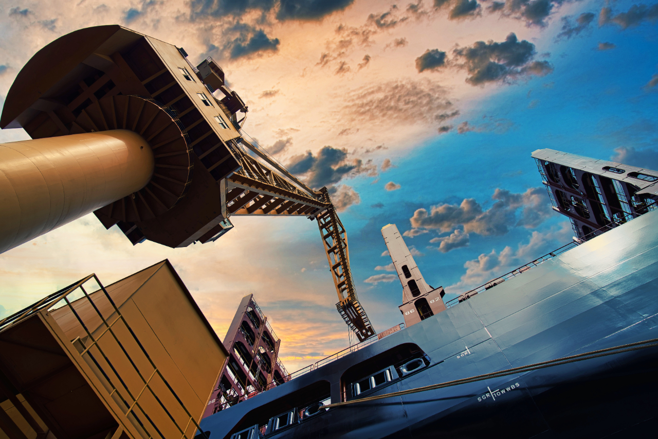 夕陽(yáng)下觀(guān)看遠(yuǎn)景的船廠(chǎng),另有一番意境。