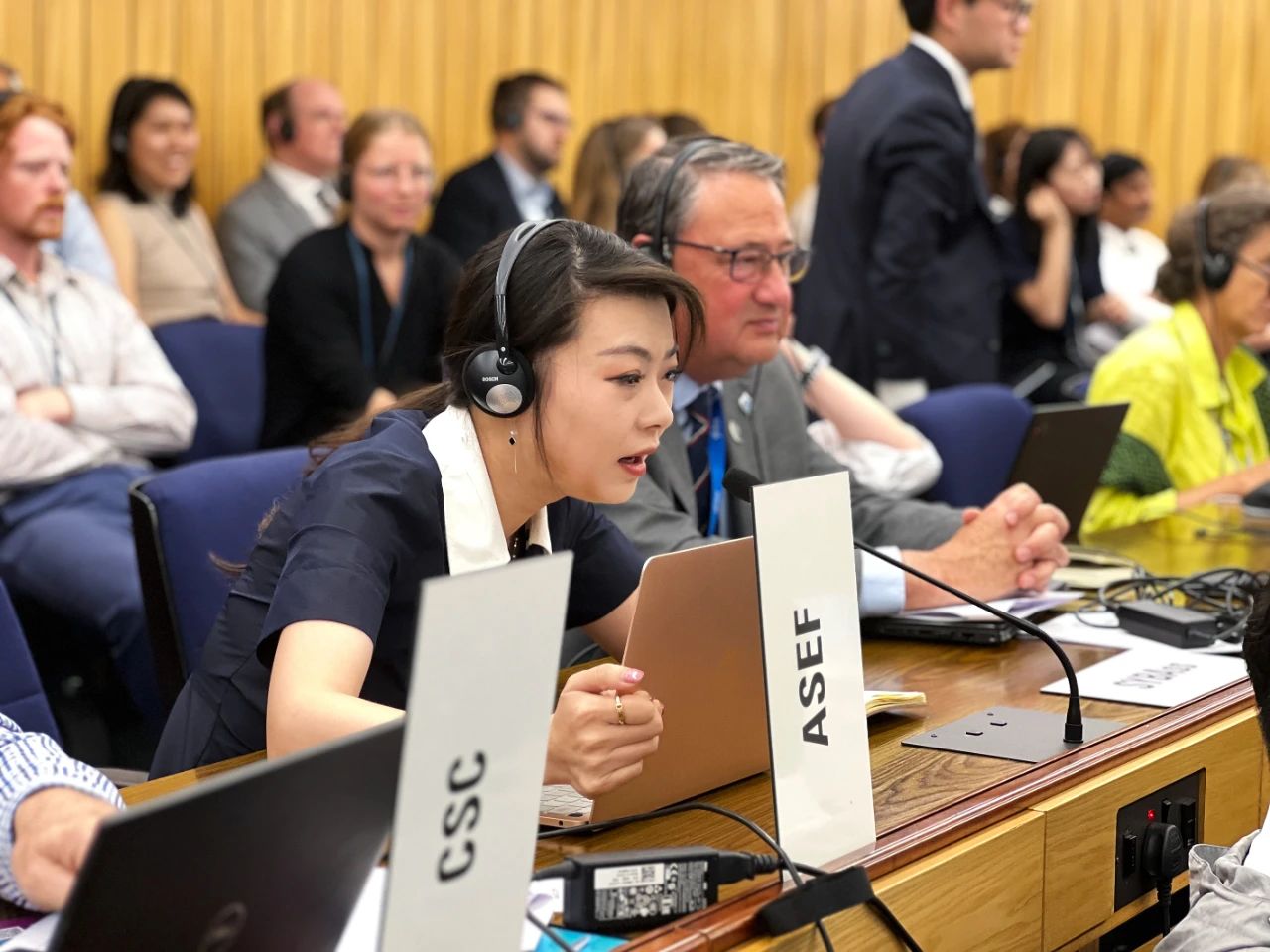 2023年7月7日,活躍造船專(zhuān)家聯(lián)盟(ASEF)秘書(shū)長(zhǎng)、中國(guó)船舶集團(tuán)十一所汪璇代表船舶工業(yè)界參與國(guó)際海事組織(IMO)海洋環(huán)境保護(hù)委員會(huì)第80次(MSC107)會(huì)議。會(huì)上,汪璇代表文件MEPC80/7/7的共同提出方發(fā)言,有力支撐中國(guó)代表團(tuán)在船用碳捕集技術(shù)(OCCS)的法律地位的立場(chǎng),為國(guó)際海事事務(wù)貢獻(xiàn)中國(guó)智慧,維護(hù)國(guó)家船舶工業(yè)利益。