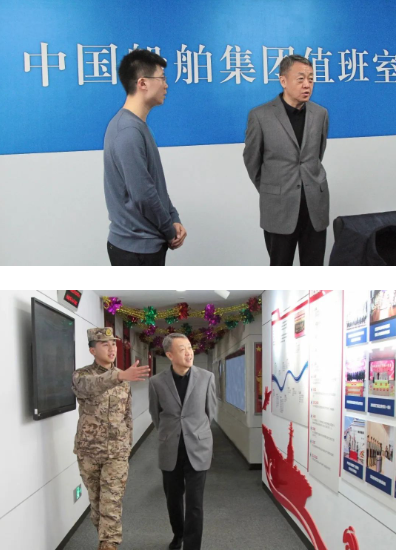 2月8日,中國(guó)船舶集團(tuán)有限公司黨組書記、董事長(zhǎng)溫剛在集團(tuán)公司總部檢查春節(jié)總值班安排和中控室運(yùn)行情況,走訪慰問(wèn)堅(jiān)守崗位員工。