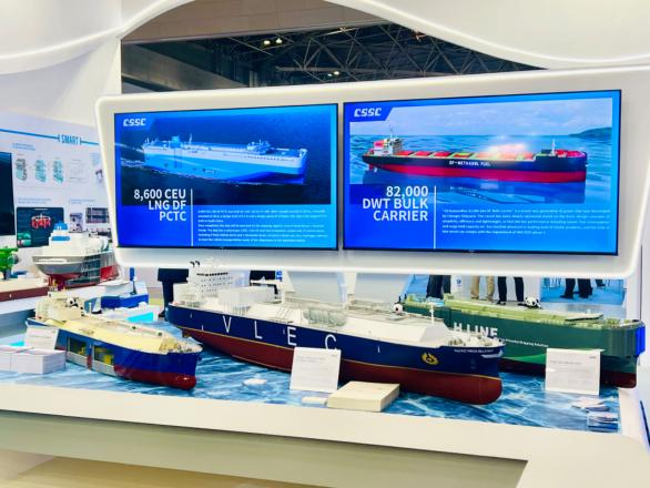 展會(huì)期間,國(guó)產(chǎn)大型郵輪、17.4萬(wàn)立方米LNG船、8600車LNG雙燃料PCTC、9.9萬(wàn)立方米VLEC、WinGD 9X92DF-2.0(-iCER)主機(jī)、船用LNG 供氣系統(tǒng)、船用碳捕捉系統(tǒng)、大口徑岸基智能裝卸系統(tǒng)等代表性產(chǎn)品悉數(shù)亮相,獲得海外市場(chǎng)高度關(guān)注。