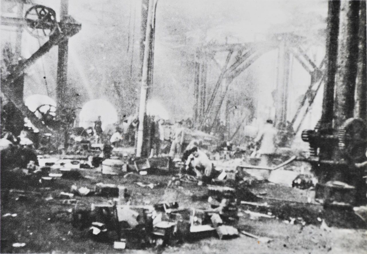 1949年5月上海,雖然江南造船所經(jīng)歷了英勇的護廠斗爭,但此時的船塢、廠房、設(shè)備,均已遭受到嚴重的破壞。