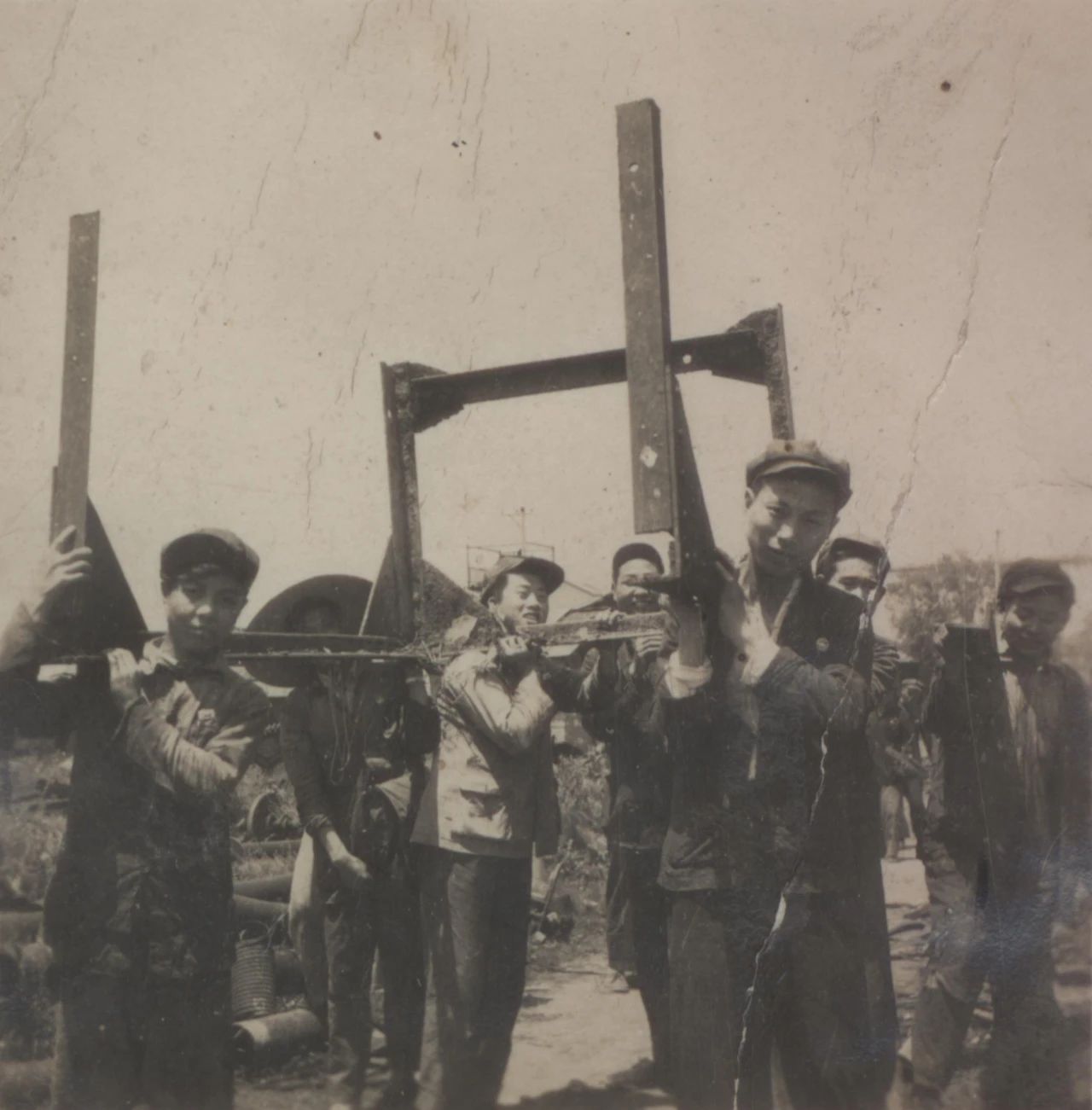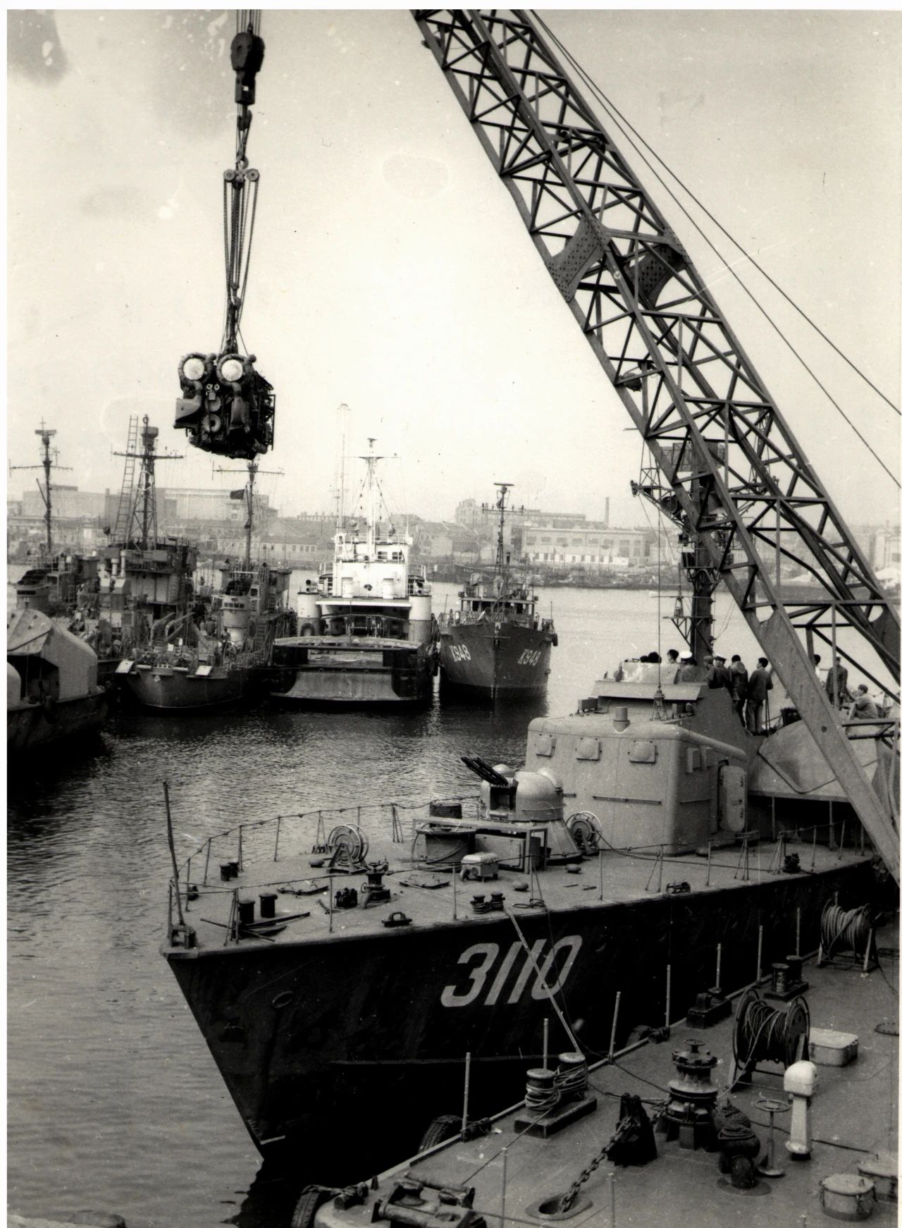 1958年廣州,1958年,廣船國際的前身廣州造船廠的造船塢,圖中的履帶式起重機是廣州造船廠主要的起重設(shè)備。