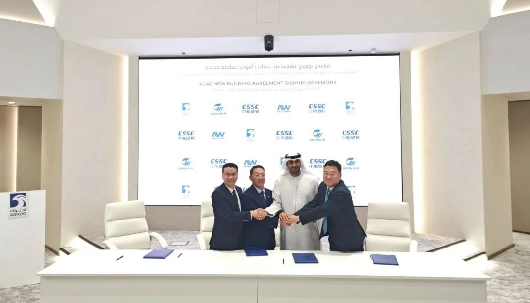 揭牌儀式后,江南造船與阿布扎比國(guó)家石油集團(tuán)物流和服務(wù)公司(ADNOC L&S)和萬華化學(xué)集團(tuán)的合資公司AW航運(yùn)公司續(xù)簽了2艘93000立方米超大型液氨運(yùn)輸船(VLAC) 。