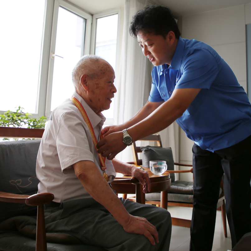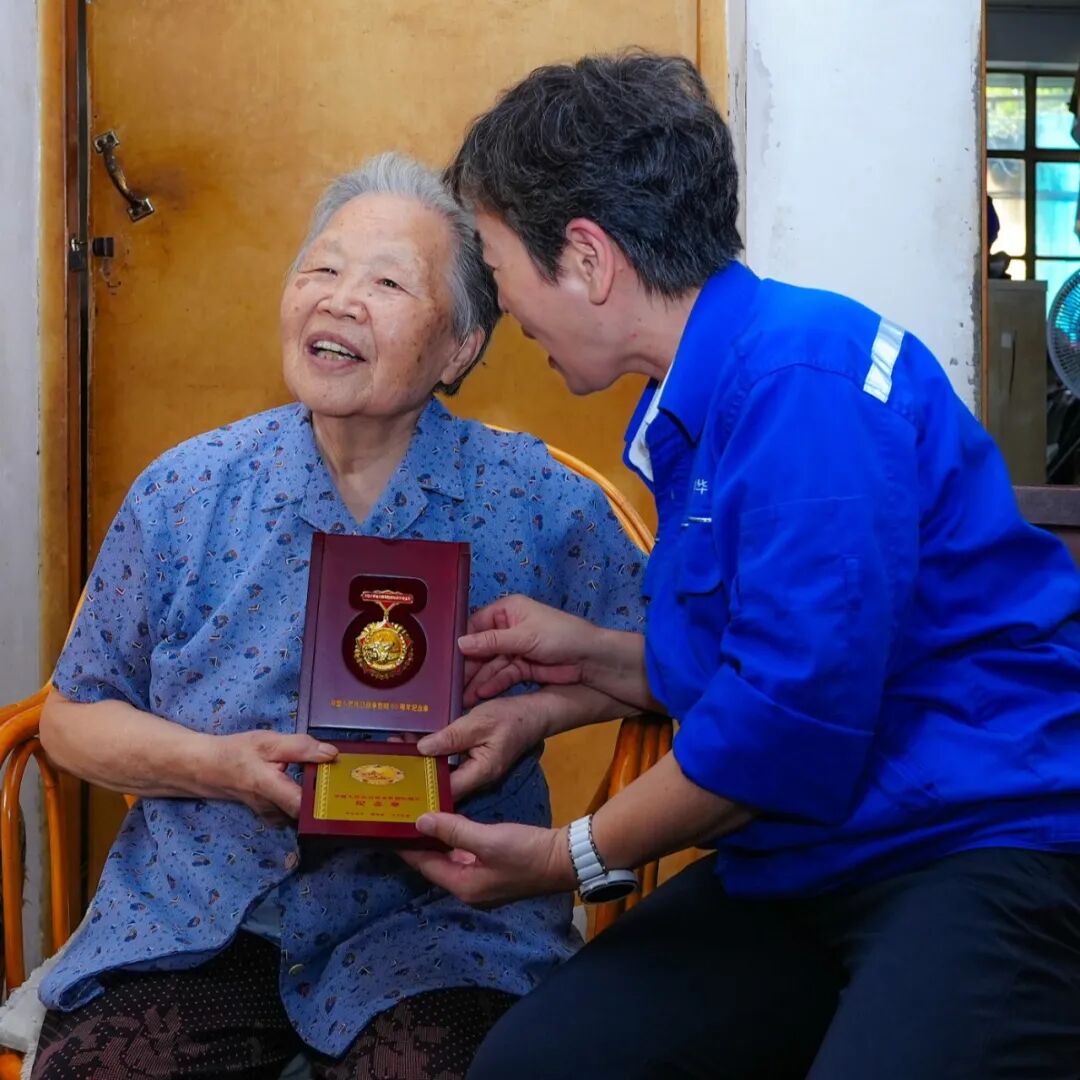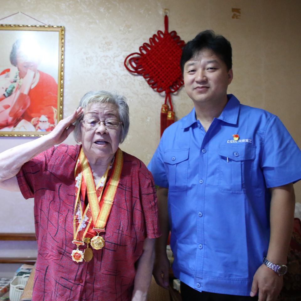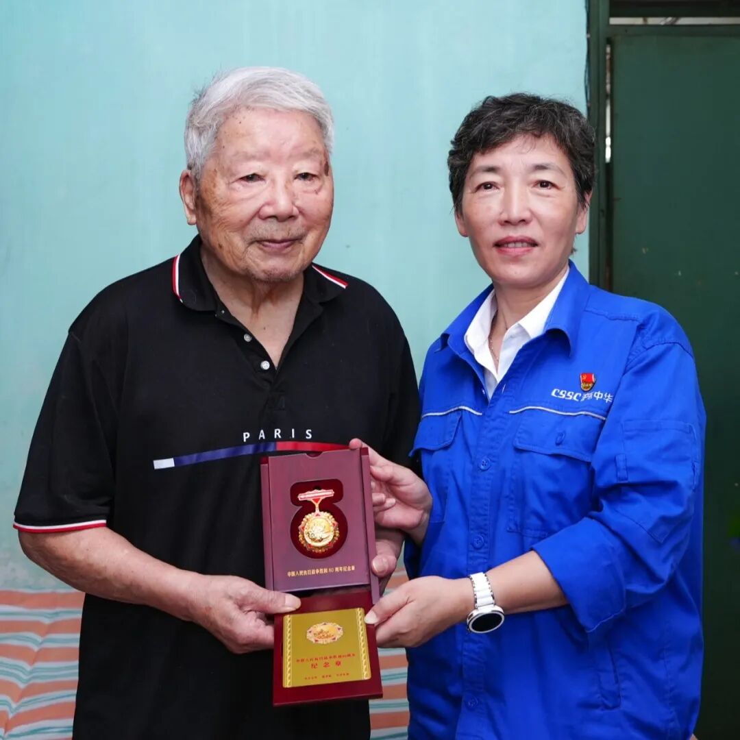 在紀(jì)念中國(guó)人民抗日戰(zhàn)爭(zhēng)暨世界反法西斯戰(zhàn)爭(zhēng)勝利80周年之際,中國(guó)船舶集團(tuán)有限公司黨組副書記、董事賈海英走訪慰問(wèn)抗戰(zhàn)老兵焦英杰,頒發(fā)“中國(guó)人民抗日戰(zhàn)爭(zhēng)勝利80周年”紀(jì)念章,并代表集團(tuán)公司黨組向他致以崇高敬意和誠(chéng)摯問(wèn)候。