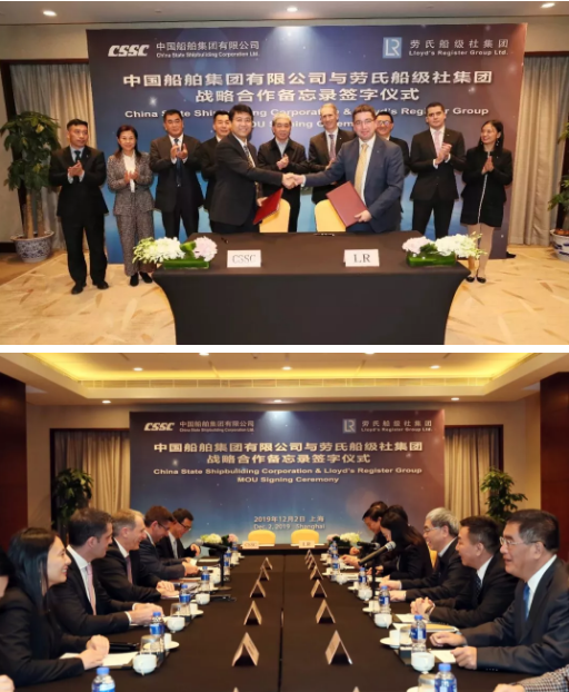 ????12月2日,中國(guó)船舶集團(tuán)有限公司與勞氏船級(jí)社集團(tuán)在上海簽訂戰(zhàn)略合作備忘錄,標(biāo)志著雙方的合作開(kāi)啟了新的歷史篇章。中國(guó)船舶集團(tuán)董事長(zhǎng)雷凡培,副總經(jīng)理孫偉、姜仁鋒,勞氏船級(jí)社集團(tuán)首席執(zhí)行官Alastair Marsh共同見(jiàn)證雙方簽約。中國(guó)船舶集團(tuán)副總經(jīng)理杜剛、勞氏船級(jí)社集團(tuán)船舶與海工總裁Nick Brown分別代表雙方在備忘錄上簽字。簽約前,雙方圍繞全球船舶海工市場(chǎng)及技術(shù)發(fā)展趨勢(shì)作了交流,就進(jìn)一步加強(qiáng)交流溝通、深化戰(zhàn)略合作進(jìn)行了深入探討并達(dá)成廣泛共識(shí)。