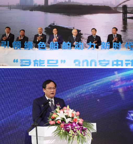 ????12月3日上午,中國船舶集團有限公司在第20屆中國國際海事會展上舉辦了“君旅號”300客位電動船產(chǎn)品發(fā)布會。中國船級社總裁莫鑒輝,中國船舶集團黨組副書記、總經(jīng)理楊金成,黨組成員、副總經(jīng)理馮永強出席發(fā)布會。