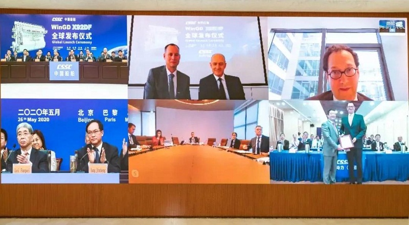 ????發(fā)布儀式采用視頻形式,在中國北京、上海,法國巴黎、馬賽和瑞士溫特圖爾全球五地遠程連線同步舉行。在各方嘉賓見證下,WinGD X92DF通過BV(法國船級社)型式認可,雷凡培宣布向全球發(fā)布。