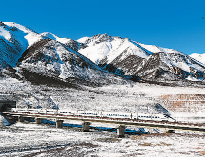 2月26日,位于甘肅、青海兩省交界處的祁連山白雪皚皚,一列動(dòng)車駛出被譽(yù)為世界海拔第一高鐵隧道的祁連山隧道。 成 林?jǐn)z(人民視覺)