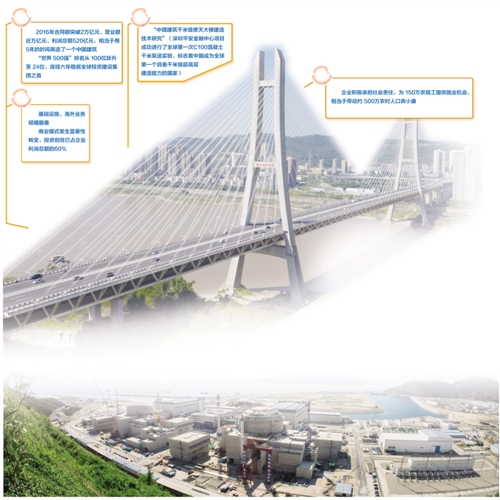黨的十八大以來的5年,中國建筑連續(xù)5次獲得國務(wù)院國資委中央企業(yè)負責(zé)人經(jīng)營業(yè)績考核A級,任期考核蟬聯(lián)“業(yè)績優(yōu)秀企業(yè)”榮譽稱號;5年來,中國建筑在財富“世界500強”排名從100位躍升至24位;5年來,中國建筑連續(xù)穩(wěn)居全球投資建設(shè)集團之首,獲得標(biāo)普、穆迪、惠譽等國際三大評級機構(gòu)信用評級A級,為全球建筑行業(yè)最高信用評級。自1982年組建以來,中國建筑實現(xiàn)“每10年多環(huán)比增長10倍”的快速發(fā)展目標(biāo)。2016年,中國建筑合同額突破2萬億、營業(yè)額近萬億、利潤總額520億,營業(yè)收入、利潤總額分別位居國務(wù)院國資委管理的中央企業(yè)第4位、第5位,相當(dāng)于用5年的時間再造了一個中國建筑。
