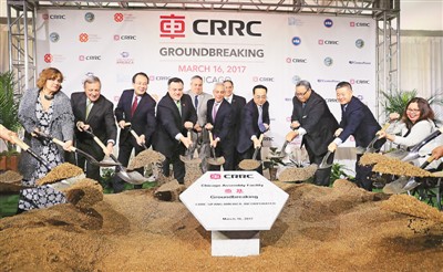 中國中車青島四方機(jī)車車輛股份有限公司3月16日在美國芝加哥東南郊的老工業(yè)基地舉行建廠動工儀式,