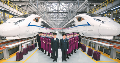 12月4日,西成高鐵首發(fā)乘務班組在中國鐵路成都局集團有限公司成都動車段亮相。(薛玉斌 攝)