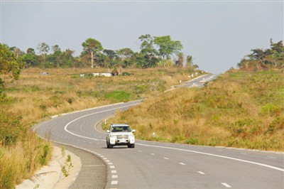 驅車駛出布拉柴維爾,剛果盆地遼闊的草原便映入眼簾。汽車很快駛上寬闊平坦的雙向四車道公路,這便是剛果(布)國家一號公路。