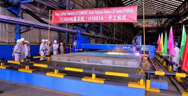 ????11月12日,滬東中華造船(集團(tuán))有限公司為中國船舶(香港)航運租賃有限公司建造的系列13000噸重吊船中的6號船開工。該船由上海船舶研究設(shè)計院設(shè)計,總長149.99米,型寬25.6米,型深13.5米,設(shè)計吃水6.8米,結(jié)構(gòu)吃水8.3米,入級DNV GL。