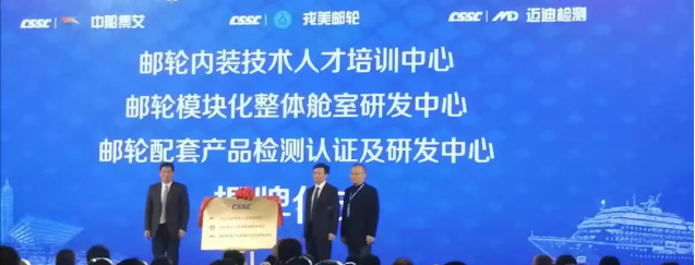 ????為解決我國(guó)郵輪配套產(chǎn)品認(rèn)證難、艙室系統(tǒng)技術(shù)水平落后、專業(yè)人才匱乏等問題,在中船郵輪和中國(guó)船舶集團(tuán)所屬中船九江海洋裝備(集團(tuán))有限公司的指導(dǎo)下,中國(guó)船舶集團(tuán)所屬中船集艾郵輪科技發(fā)展(上海)有限公司聯(lián)合中國(guó)船級(jí)社和上海工程技術(shù)大學(xué)成立了《郵輪配套產(chǎn)品測(cè)試認(rèn)證及研發(fā)中心》、《郵輪模塊化整體艙室研發(fā)中心》和《郵輪內(nèi)裝技術(shù)人才培訓(xùn)中心》,并在會(huì)上正式揭牌。