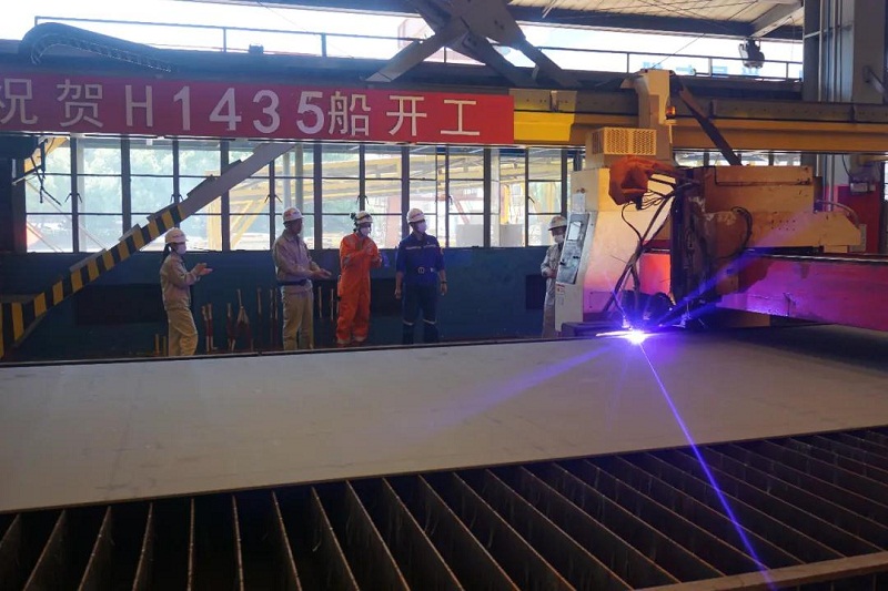 ????日前,中國船舶集團(tuán)旗下外高橋造船為PTM公司建造的阿芙拉型油船順利開工。受疫情影響,船東駐廠組代表無法到場(chǎng),特意委托英國勞氏船級(jí)社(LR)代表驗(yàn)收開工鋼板情況、見證鋼板切割,并以“云簽字”的形式簽署了開工節(jié)點(diǎn)證書。
