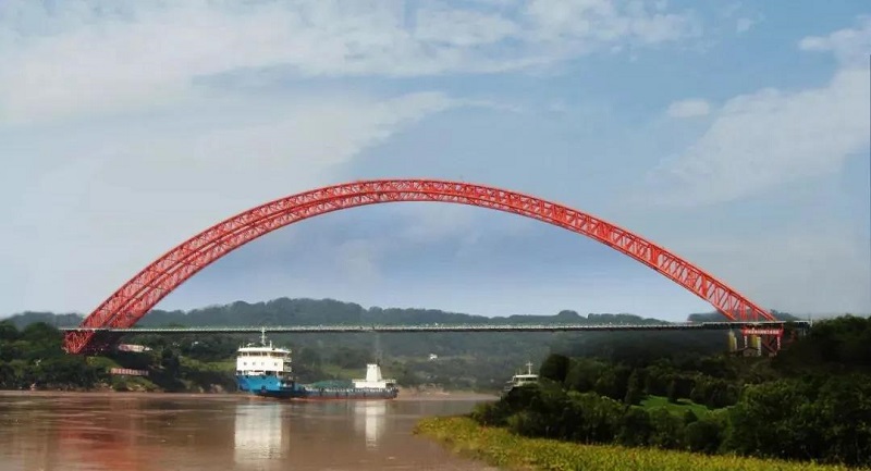 2002年1月, 簽訂巫山長江大橋合同。巫山長江大橋位于長江三峽段的巫峽入口處,是一座鋼管中承式拱橋,橋面凈寬19米,雙向4車道,主跨492米,被稱為"渝東門戶橋""渝東第一橋",創(chuàng)造了多項(xiàng)世界紀(jì)錄。
