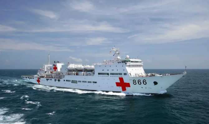 這是一艘特殊的軍艦,在人民海軍的序列里,她是唯一。她的甲板上,沒有艦炮、魚雷,沒有導(dǎo)彈、火箭;她的“裝備”是手術(shù)室、病房、血庫;她的“武器”是CT機(jī)、X光機(jī)、藥品、醫(yī)療器械;她最醒目的標(biāo)志是通體的白色和船舷上大大的紅十字。