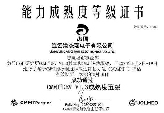 此次CMMI-Dev ML5級(jí)認(rèn)證的順利通過,標(biāo)志著杰瑞電子的軟件過程組織、技術(shù)研發(fā)與項(xiàng)目管理已經(jīng)達(dá)到國際領(lǐng)先標(biāo)準(zhǔn),具備優(yōu)秀的軟件成熟度及軟件項(xiàng)目管理能力。