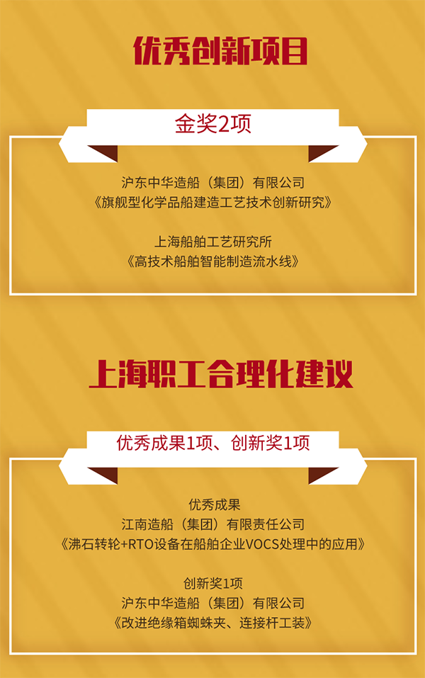 中國船舶集團上海船舶系統(tǒng)共19項職工創(chuàng)新成果,在第32屆上海市優(yōu)秀發(fā)明選拔賽等各項賽事中斬獲佳績。